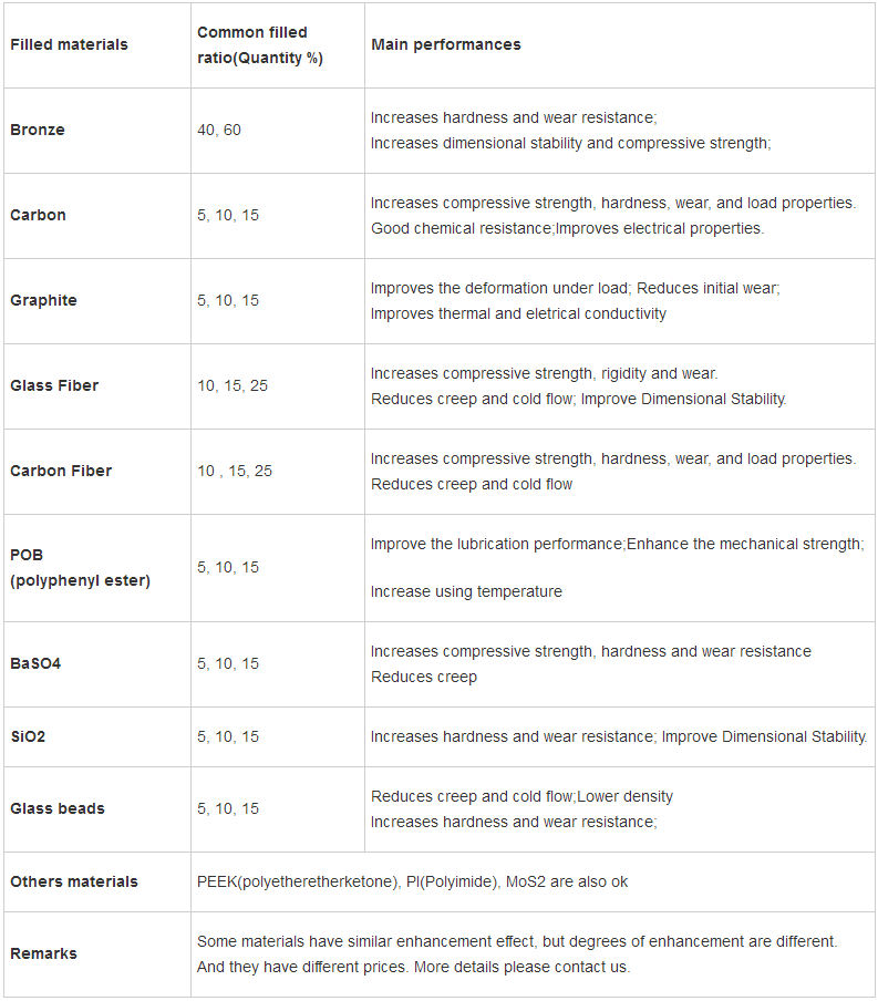 PTFE has excellent heat resistance, chemical resistance, non-adhesiveness and weather resistance, and can be modified by adding an appropriate amount of bronze. In order to maintain its low friction, it achieves excellent wear resistance, high temperature resistance of 350 degrees, high strength, high stiffness and dimensional stability....